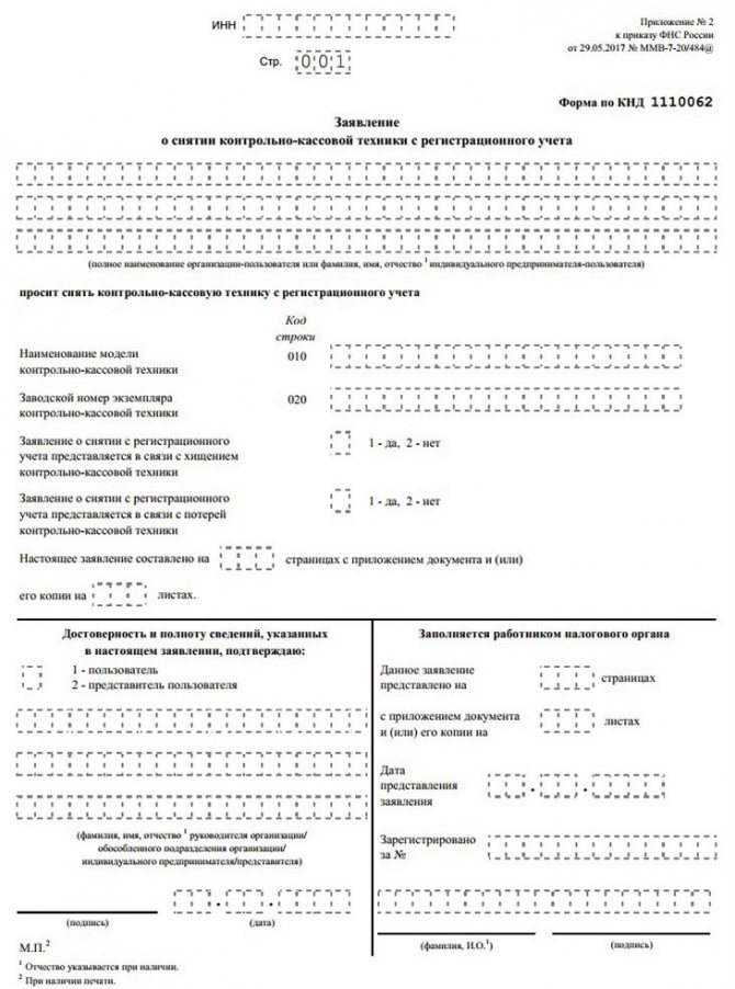 • Снятие кассы с учета