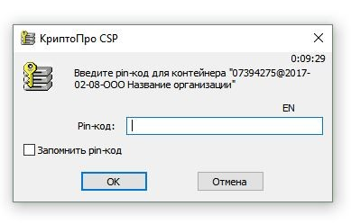 9. Если КриптоПро CSP запрашивает pin-код от контейнера, введите нужный код или попробуйте стандартные pin-коды носителей (список ниже):