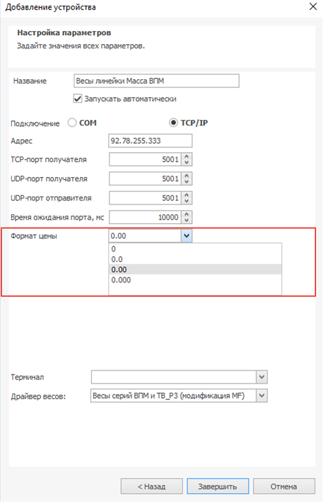 • Подключение весов с печатью этикеток