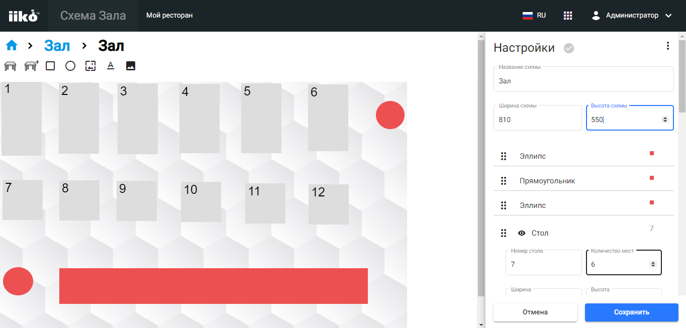 Раньше редактировать схему залов могли пользователи, у которых был доступ в iikoOffice. А остальным пользователям приходилось обращаться за помощью к техподдержке. Теперь составить схему зала можно самостоятельно для всех тарифов облачного офиса.